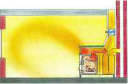 Der offene Kamin bietet viel Romantik, aber vergleichsweise wenig Heizenergie. Es handelt sich vor allem um direkte Strahlungs-energie aus dem Feuerraum. Beachtenswert ist der Bedarf an Luft, die während des Heizens über die Kaminöffnung aus dem Raum gesaugt wird. Diese muss nachge-führt werden, um einen störungs-freien Betrieb zu sichern. Auch ist der Schornsteindurchmesser zum Anschluss eines offenen Kamins deutlich größer bemessen.